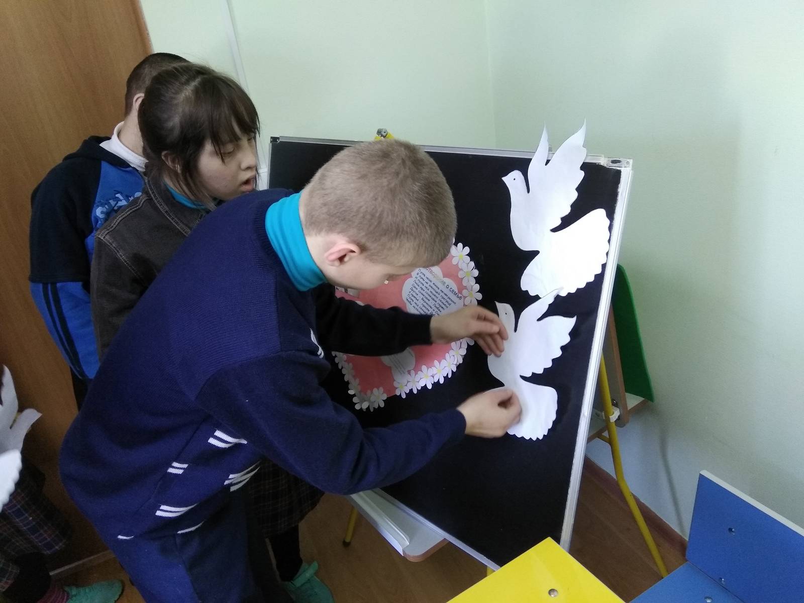 14 мая 2018 г.в ГАУСО "Верхне Отарский детский дом интернат для умственно отсталых детей" воспитатель Хабибуллина Г.Р. вместе шестью воспитанниками подготовила наглядно - иллюстративный материал ко дню семьи под темой "Ромашки к 15 мая - День семьи".