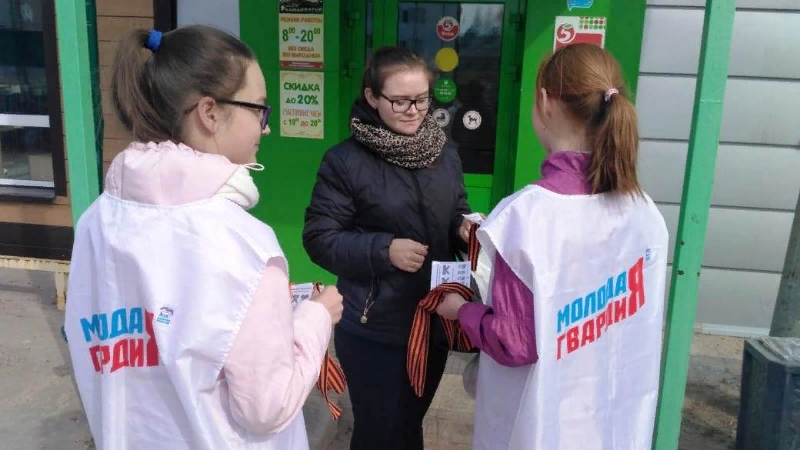 В целях патриотического воспитания молодежи в Сабинском муниципальном районе продолжается акция «Георгиевская лента» приуроченная 74-летию Великой Отечественной Победы. Сегодня, 26 апреля 2019 года акция прошла в центральной площади поселка Шемордан Сабинского муниципального района. Активисты Молодой Гвардии раздали свыше 100 георгиевских лент.