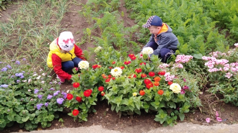 Научить детей видеть красоту, восхищаться ей, и, конечно же, создавать красоту своими руками – главная цель нашей работы. Весной мы вмести с детьми сажаем овощи, цветы, летом поливаем их, очищаем от сорняков, осенью собираем урожай. Все это делается с целью воспитания личности, которая любит труд и красоту