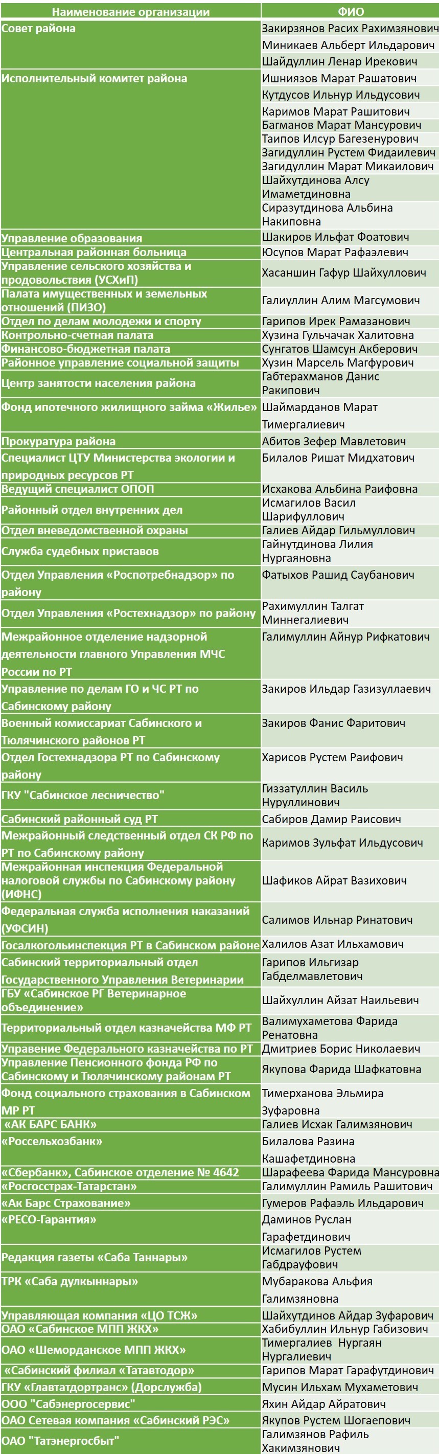 СПИСОК депутатов Совета Сабинского муниципального района