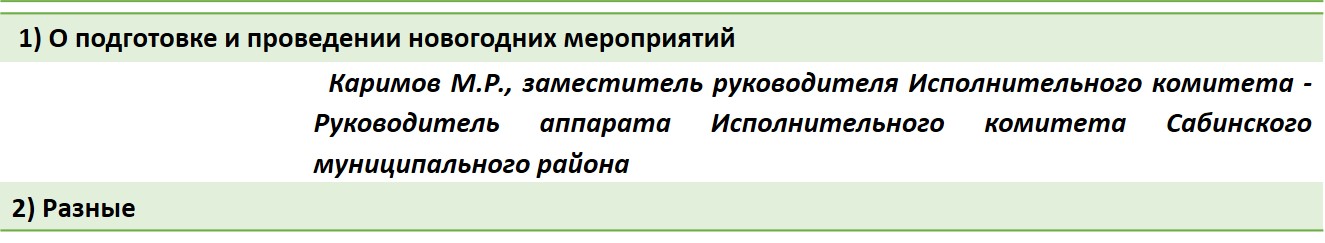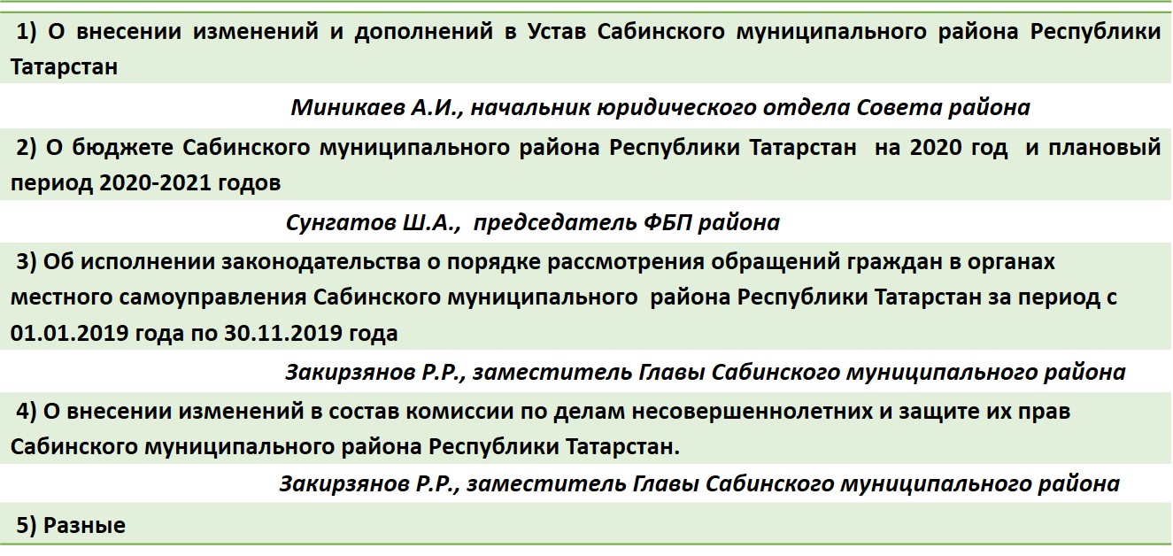 Повестка заседания (сессия) Совета Сабинского муниципального района и дополнительно приглашенными лицами