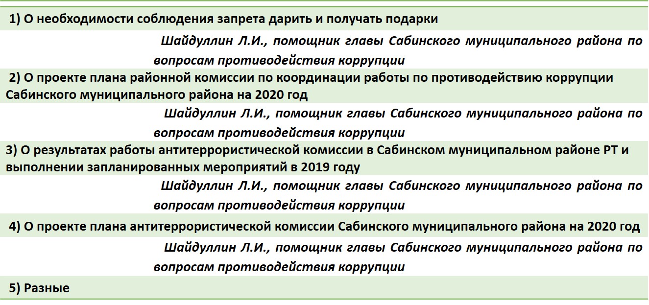 Повестка заседания комиссий по противодействию терроризму и противодействию коррупции и дополнительно приглашенными лицами