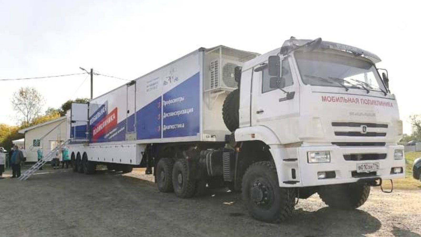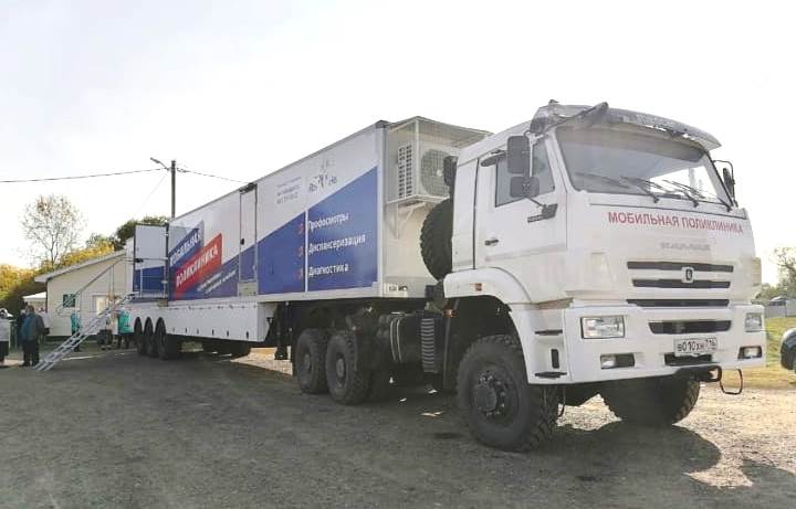 Мобильная поликлиника оборудована современной медицинской аппаратурой, в автопоезде имеются регистратура и изолированные кабинеты для приёма пациентов, оснащённые переносным диагностическим оборудованием. В мобильном пункте есть и свой лабораторный комплекс. Приём ведут кардиолог, невролог, эндокринолог, хирург-онколог, офтальмолог, акушер-гинеколог.