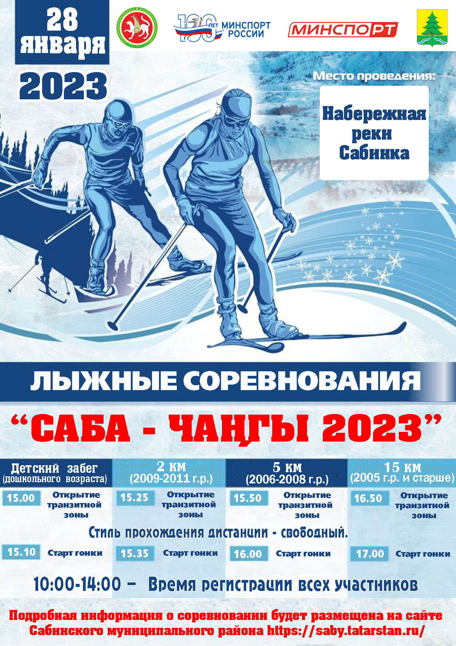Всех спортсменов приглашаем принять участие в ночных лыжных гонках "Саба чаңгы 2023", которые состоятся 28 января 2023 года в п.т.г.Богатые Сабы на набережной реки Сабинка. Время регистрации всех участников начинается в 10.00 часов. Соревнования будут проходить на 3 дистанциях (15 км, 5 км, 2 км) и также будет детская гонка.