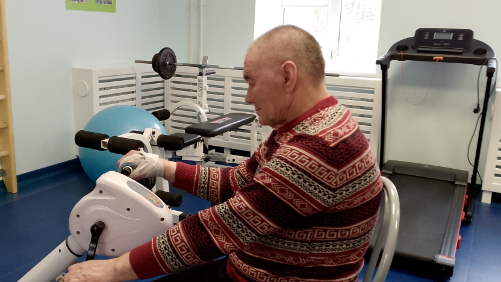9 апреля в Лесхозском доме-интернате для престарелых и инвалидов среди маломобильных получателей социальных услуг в спортивном кабинете прошли индивидуальные занятия.
