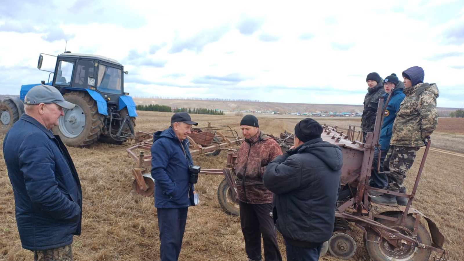 Бригада Кибячи ООО "Саба" занимается удобрением полей аммиачной селитрой. Трактористы Баширов Ильдус, Шарафеев Ильназ и их помощники прилагают усилия для получения много сена из люцерны.