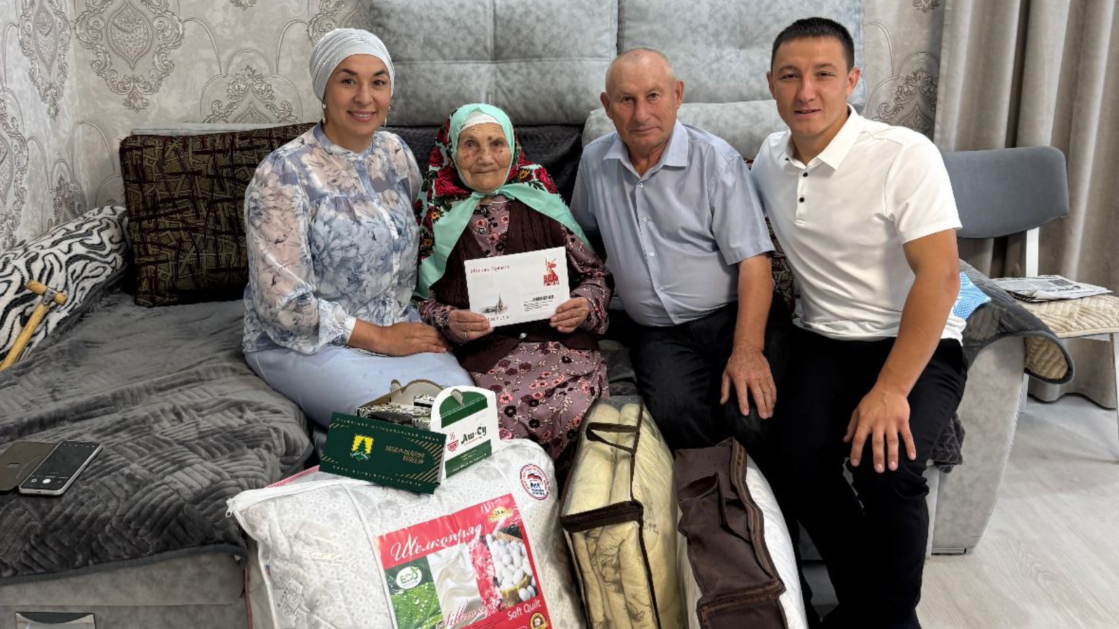 Минибаева Нуржихан Габтулхаковна родилась 21 июня 1930 года в деревне Три Сосны Сабинского района. Получила начальное образование в Икшурминской школе, продолжить учебу не смогла – началась война. В годы войны работала с односельчанами, детьми своего времени на полях колхоза” Икшурма", рубили деревья. После окончания тяжелых военных лет вышла замуж за Минахмата Минибаевича. За время совместной жизни воспитали 4 детей (2 мальчика и 2 девочки). Нуржихан апа всю жизнь проработала в колхозе разнорабочей. Как вдове ветерана войны вручаются юбилейные медали в честь "Победы в Великой Отечественной Войне". Нуржихан Габтулхаковна живет в деревне Три Сосны на попечении дочери Мансура апы.Дети, внуки, правнуки постоянно приезжают и заботятся о счастливой бабушке.Стоит отметить, что один из внуков Нуржихан апы Минибаев Ильназ-учатник спецоперации.