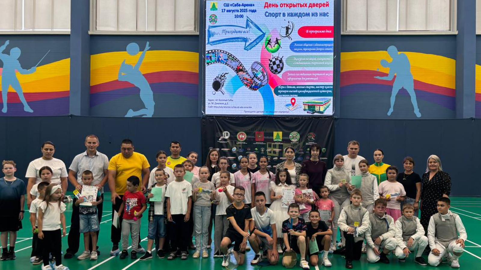 17 августа в СШ «Саба-Арена» прошел день открытых дверей «Спорт в каждом из нас». Лейсан Зарипова провела утреннюю зарядку. Это была не просто зарядка, это настоящий заряд бодрости и хорошего настроения на весь день! Все получили массу положительных эмоций, зарядились энергией и почувствовали себя отлично! Поприветствовали своими изумительными концертными номерами спортсмены нашей школы Рияна Имамиева и Сумая Назмутдинова. В большом зале спортсмены вместе с тренерами продемонстрировали технические навыки бадминтона, настольного тенниса, фехтования и шахмат. В целях приобщения детей к традициям большого спорта бадминтона, настольного тенниса, фехтования, шахмат, знакомства с современным спортивным сооружением СШ «Саба-Арена», а также популяризации детского спорта провели экскурсию по УСК. Презентовали работу школы, ознакомили федеральным стандартом по видам спорта. В ходе мероприятия ребята и родители померялись силой, проявили смекалку и ловкость в весёлых эстафетах. Спортивная эстафета прошла весело и задорно. Команды продемонстрировали спортивные умения, а также получили заряд бодрости и массу положительных эмоций. А завершился день открытых дверей мастер-классами тренеров-преподавателей высшей квалификационной категории по видам спорта. Ждем всех желающих на нашей базе!