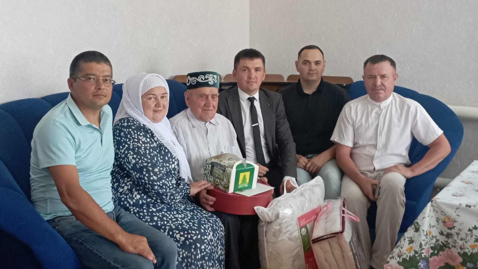 17июля житель с. Евлаштау Ярмиев Зиннур Ярмухаметович отметил свое 90-летие. Его поздравили и вручили подарки от имени Главы Сабинского муниципального района Минниханова Р. Н.и от себя лично директор ГАУСО "КЦСОН Балкыш" МТЗ и СЗ РТ в Сабинском муниципальном районе Давлетшин И.И., глава Евлаштауского сп Нуриев Р.Х..и представитель ООО «Саба» Фазлыев А.К. Желаем чтобы он и дальше жил в почете и уважении.