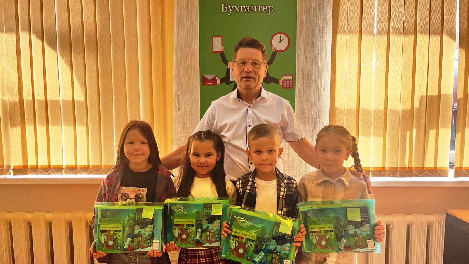 Первый раз в первый класс. Сегодня Финансово – бюджетная палата приняла  детей сотрудников, которые 1 сентября пойдут в первый класс. Для будущих школьников была организована познавательная мини программа. Председатель Финансово – бюджетной палаты Шамсун Акберович Сунгатов  обратился к будущим первоклассникам с пожеланиями успешной учебы, отличных отметок и вручил им подарки – школьные принадлежности.