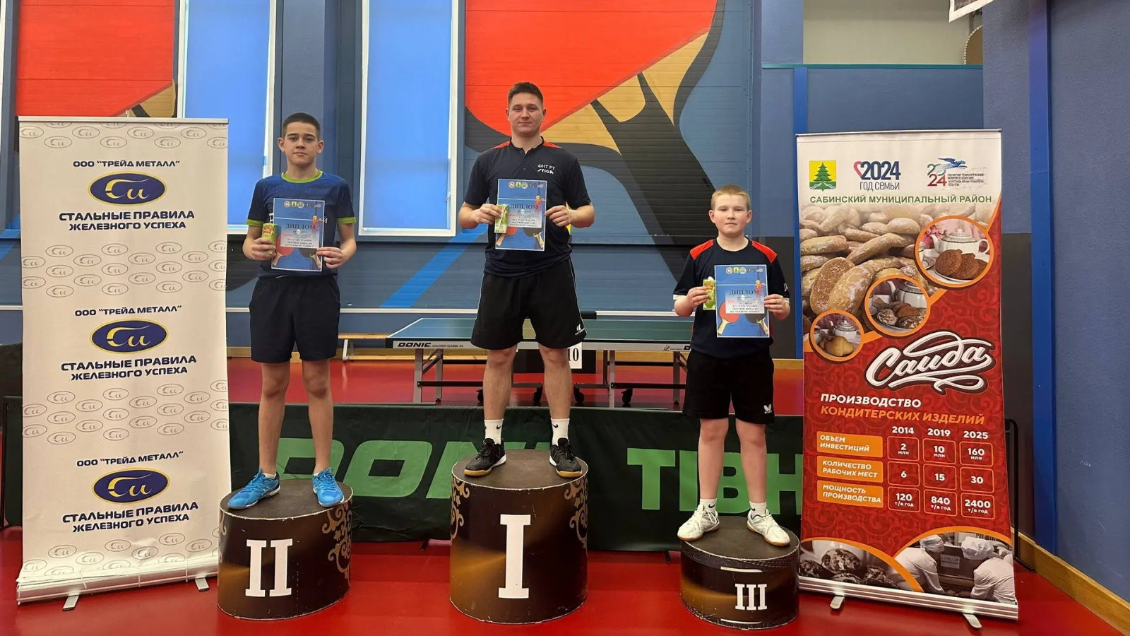 4-й этап «Марафон добра» по настольному теннису от ООО «Трейд металл» и ООО «Саида». Ни метель,ни буран,ни гололедица не помеха теннисистам,потому-что стальные характеры и стальные правила не дают отсиживаться дома.37 ребят-участников и 17 девушек-участниц скрестили ракетки 8 февраля в УСК «Саба-Арена»Было жарко. Среди девушек на третьей позиции была представительница г.Кукмора Элиза Буравова. Вторая строчка за Сабинкой Галиной Гороховатченко. Победу праздновала Арина Буравова г.Кукмор. В мужском одиночном разряде фортуна была на стороне Сабинцев. Третья строчка за Раяном Юсуповым.Вторая за Ильсафом Латыповым.Лидер турнира -Гадель Валимухаметов.Не обошлось и без сладких призов от именинников.А гран-при проходит при спонсорской поддержке ООО «Трейд металл» и ООО «Саида»Участники марафона выражают благодарность спонсорам,За тепло и уют «Саба-Арена»