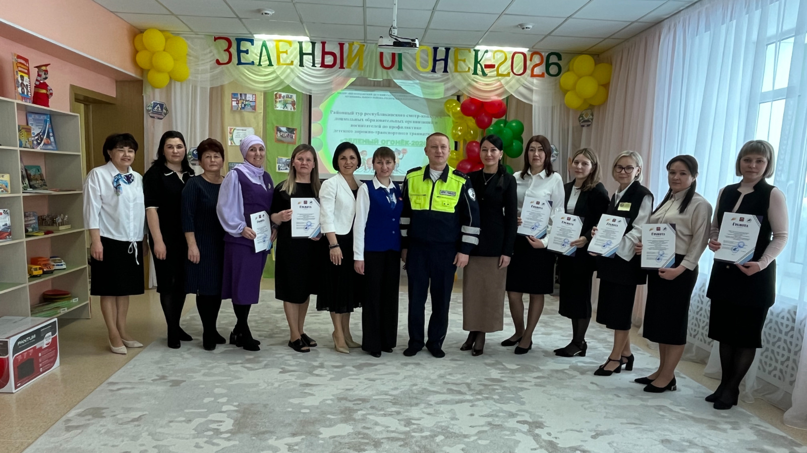 На базе МБДОУ «Шеморданский детский сад №1 «Экият» Сабинского муниципального района РТ» состоялся муниципальный этап республиканского смотра-конкурса «ЗЕЛЕНЫЙ ОГОНЁК-2026», направленный на профилактику детского дорожно-транспортного травматизма. Участники поделились своим передовым опытом и представили свои проекты по обучению детей безопасности дорожного движения. В состав жюри и в качестве почётных гостей мероприятия были приглашены старший инспектор ОГИБДД Сабинского района капитан полиции Насибуллин Ильнур Дамирович, начальник Сабинского отделения ГБУ «Безопасность дорожного движения» Ягафарова Гузель Назифовна, а также представители отдела образования.