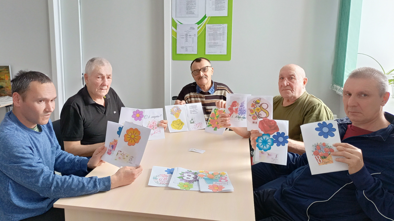 6 марта, в преддверии этого праздника, в Лесхозском доме-интернате с получателями социальных услуг провели мастер-класс по изготовлению открыток и поздравили женскую половину интерната среди получателей социальных услуг с праздником.