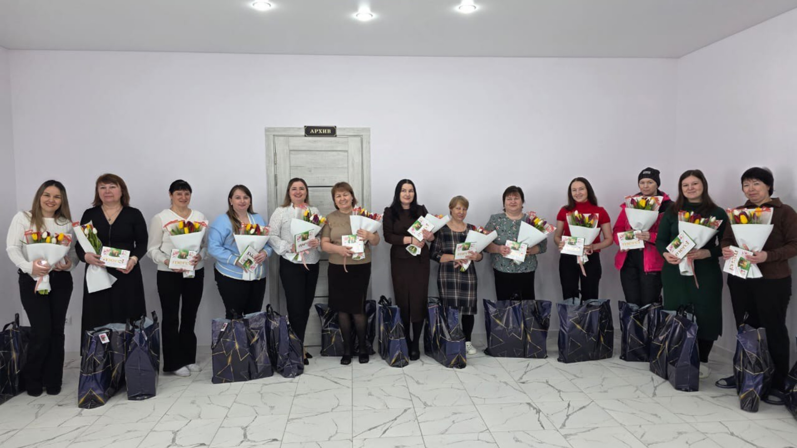 Руководитель вручил букет цветов, подарки и пожелал праздничного настроения, семейного счастья, здоровья и благополучия.
