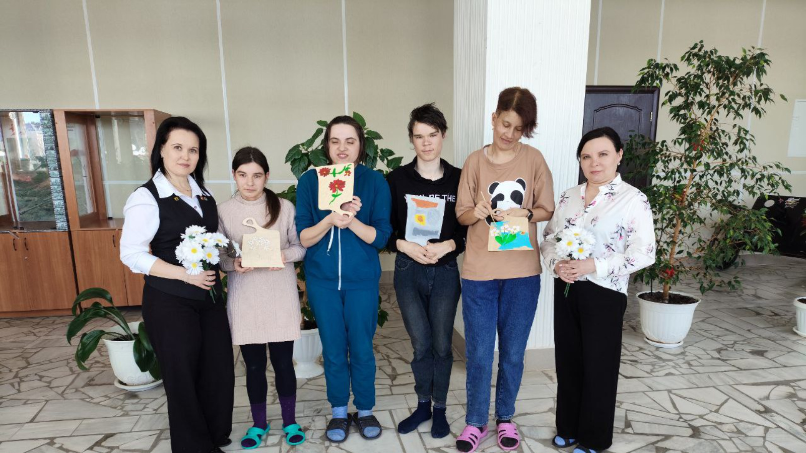 Участники с большим интересом слушали рассказ о ромашках — символах весны, радости и надежды, а затем приступили к практической части. Под чутким руководством специалистов они начали создавать свои собственные цветы на досках. Каждый смог выбрать свой уникальный стиль и подход к работе. Кто-то делал яркие ромашки с большими лепестками, а кто-то — миниатюрные цветы с нежными оттенками. В завершение мастер-класса все участники представили свои работы.