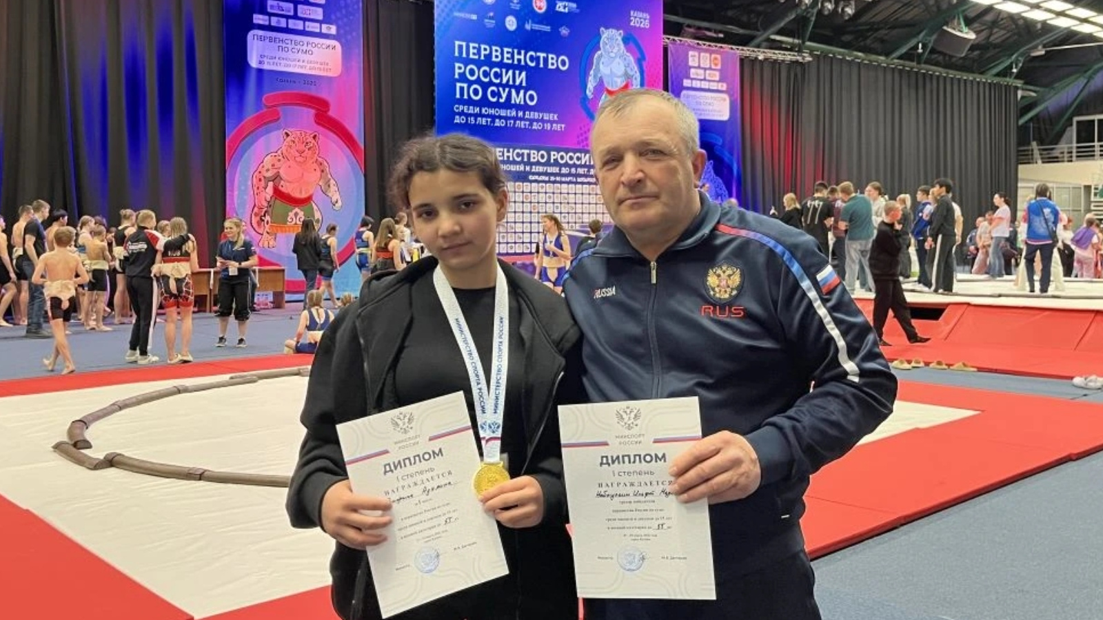 С 27 по 29 марта 2026 года во Дворце единоборств «Ак Барс» в Казани прошло Первенство России по сумо среди юношей и девушек в трёх возрастных категориях: до 15, до 17 и до 19 лет. В соревнованиях принимают участие около 1000 спортсменов из 33–35 регионов страны. В соревнованиях участвовали спортсмены МБУ ДО СШ "Олимп" под руководством тренера-преподавателя Набиуллина Ильфата Назиповича.Спорсменка нашей школы Вафина Адэлина в категории до 15лет ( 50кг.) заняла -1 место. Поздравляем Адэлину и Ильфата Назиповича с блестящей победой!