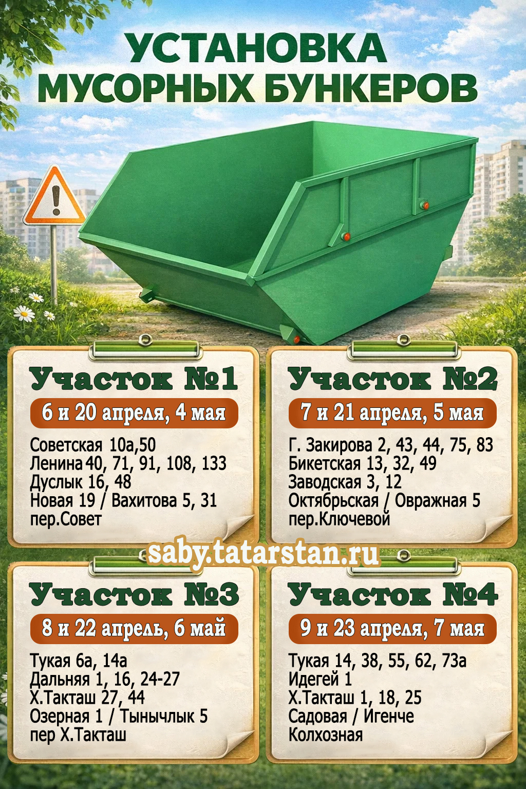 График установки бункеров на улицах на весенний период 2026 года