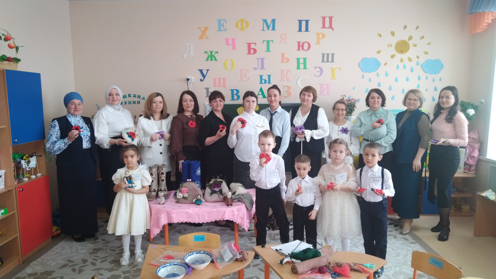 На семинаре педагоги продемонстрировали наглядный пример работы с родителями и детьми: расписали акриловыми красками гипсовые фигурки на подставке, сделали цветок из шерсти в технике мокрого валяния, провели музыкальную игру «Түбәтәй» и «Кояшлы бәйрәм», показали музыкально-театрализованную деятельность: «Нәүрүз».