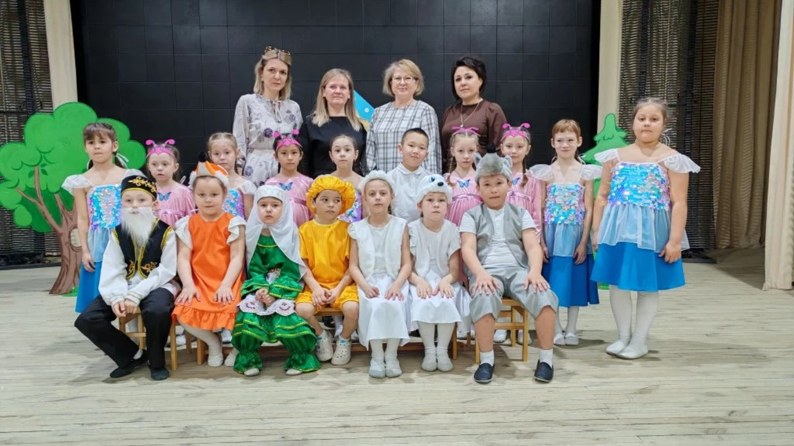 Воспитанники подготовительной группы МБДОУ «Шеморданский детский сад №2 «Теремок» в Шеморданском Доме Культуры выступили с музыкально - театральной постановкой сказки «Колобок». Сказка была представлена вниманию детских садов «Салават күпере» и «Әкият». Наши маленькие артисты с воодушевлением перевоплотились в любимых сказочных героев: Колобка, Деда, Бабку, Зайцев, Волка и Лису. Каждый ребенок проявил свои таланты - пел, танцевал и декламировал текст. Постановка получилась по-настоящему музыкальной: каждая сцена сопровождалась веселыми песнями и танцами. Яркие костюмы, красочные декорации и искренняя игра детей создали праздничное настроение для всех гостей. Спектакль не только подарил радость зрителям, но и стал важным этапом в развитии дошкольников.
