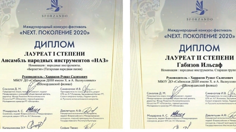 Шулай ук 25-30 апрель көннәрендә " NEXT.Поколение 2020 " халыкара фестиваль-конкурсы читтән торып үткәрелде.Әлеге конкурста Саба балалар сәнгать мәктәбенең Шәмәрдән филиалы укучылары һәм "Яшьлек" бию коллективы катнашып, түбәндәге нәтиҗәләргә иреште: