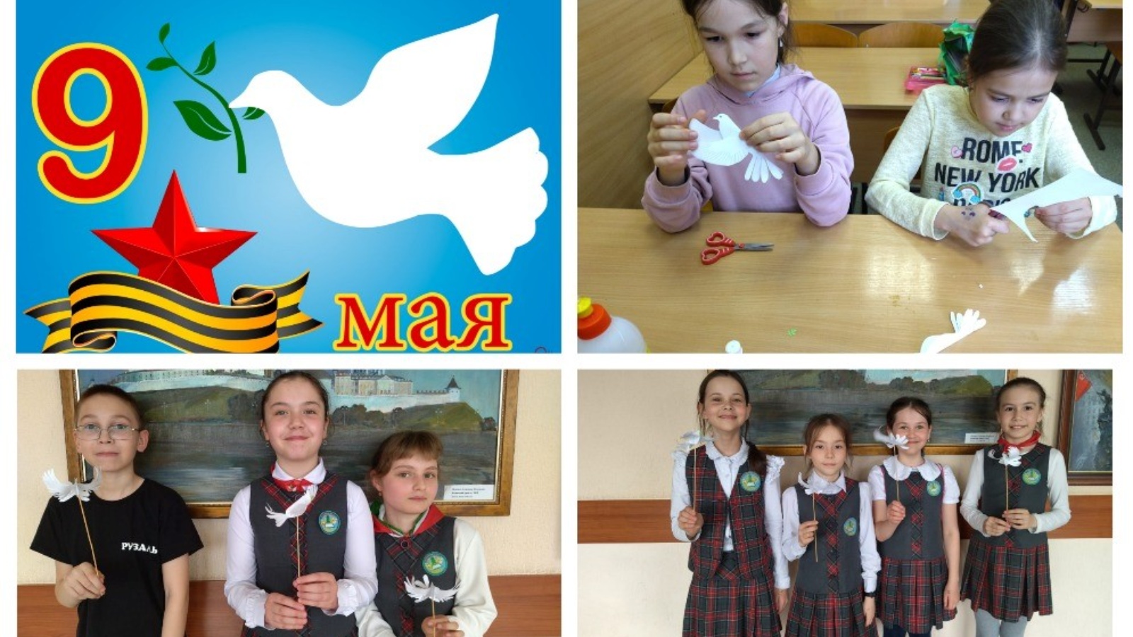 Дәрес бәйрәм символикасы һәм илебез өчен 9 май көненең әһәмияте, Ватанны саклаучыларның фидакарьлеге һәм кыюлыгы, аларның батырлыгы турында мотивацион әңгәмә белән башланып китте. Чөнки иң мөһиме – баланың мавыгуы белән генә түгел,ә аның әһәмиятен аңлавы һәм бу символның мәгънәсен аңлавы. Дәреснең теоретик өлешеннән соң укучылар практикага керештеләр. Җиңү көненә сувенир итеп «Тынычлык күгәрчене» ясадылар.