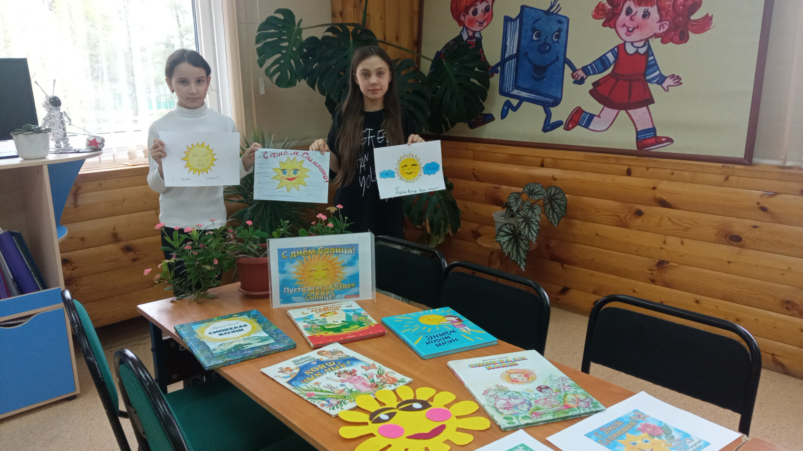 3 май-Бөтендөнья Кояш көне. Бу көнне китапханәче Балаларга кояш турында, иң мөһим йолдыз турында сөйләде һәм рәсем конкурсында катнашырга, үзенең кояшын ясарга тәкъдим итте. Балалар илһамланып, үз хезмәтләренә бөтен фантазияләрен һәм осталыкларын кулланып, рәсем ясадылар. Төсле карандашлардан файдаланып, балалар эссе җәйнең төп символы-кояш ясадылар. Конкурста катнашучылар шулай ук табышмакларга җавап бирделәр һәм кояш турында мәкальләр искә төшерделәр. Кояш сүзе кергән китаплардан торган күргәзмәгә күзәтү ясалды,шигырьләре кычкырып укылды.