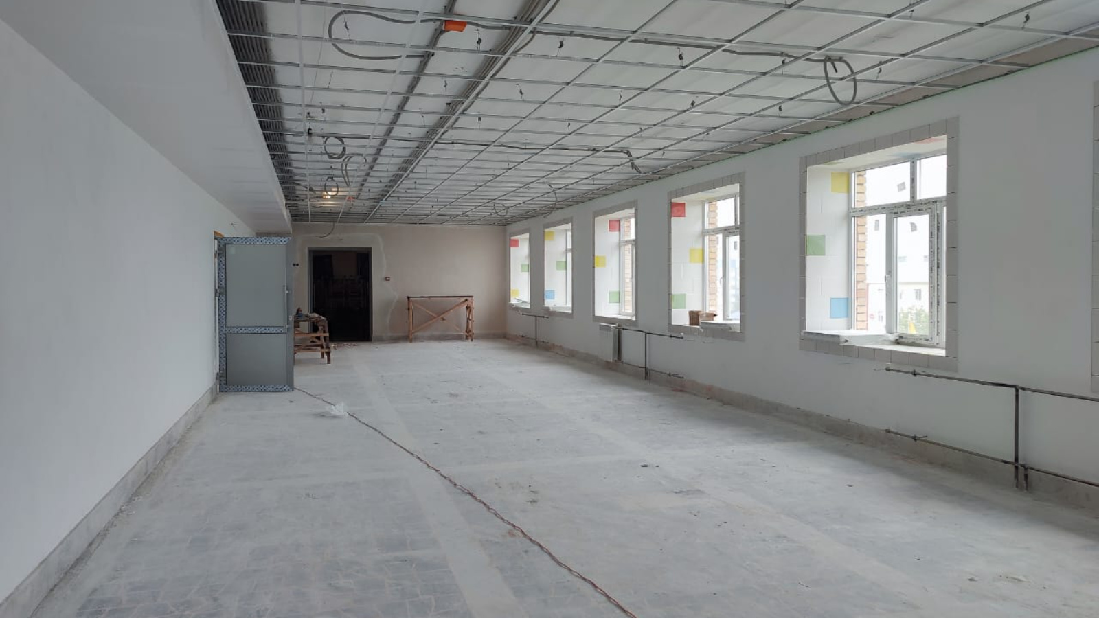 Бизәү эшләре, идән һәм түшәм ясау эшләре бара. Түбә ябу һәм тәрәзәләр кую эшләре дә дәвам итә. Электр монтажлау эшләре 50% ка башкарылган.