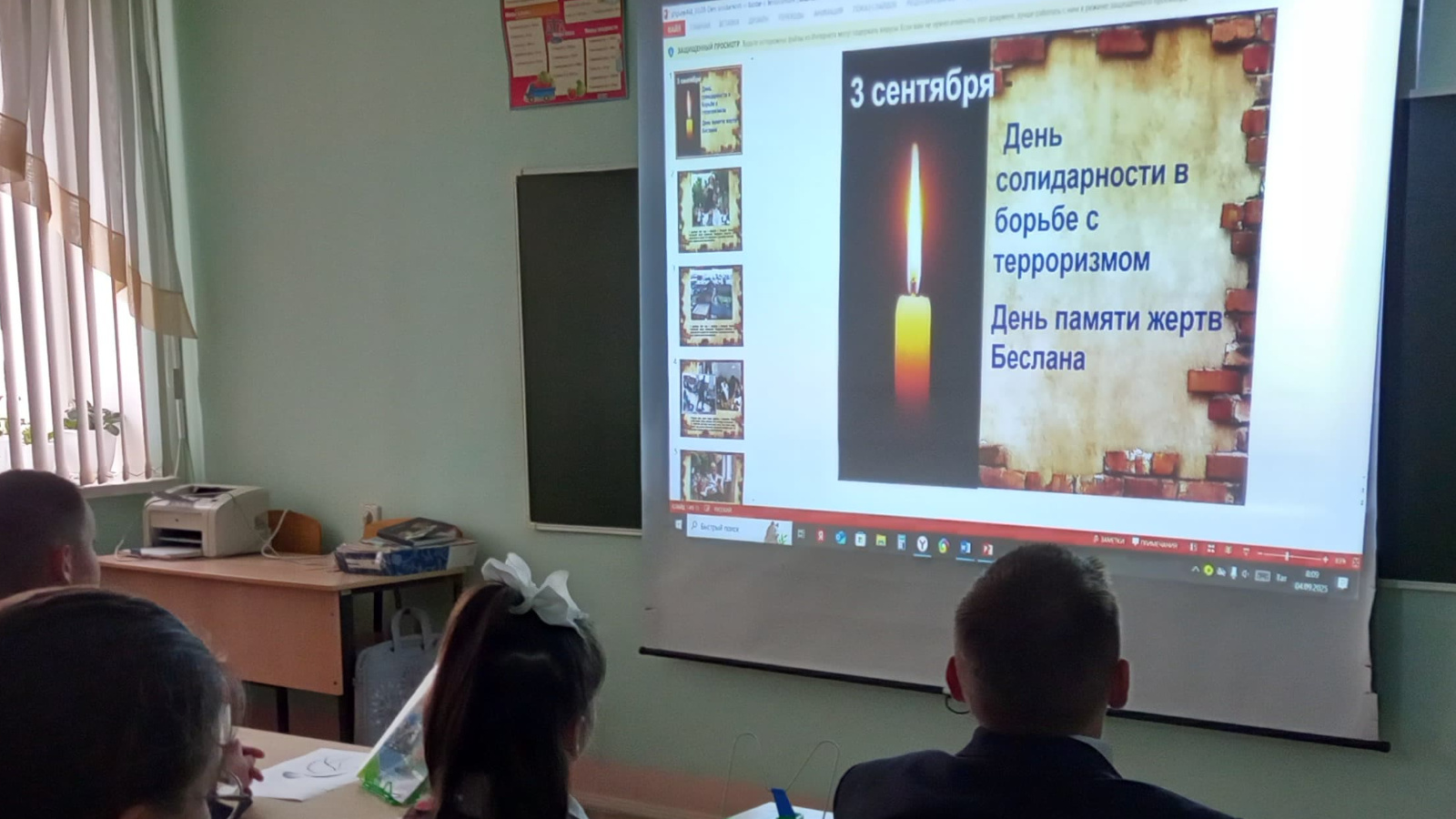 3 сентябрь көнне Олы Шыңар урта мәктәбендә Террорчылыкка каршы көрәштә теләктәшлек көненә багышланган чаралар узды. Чаралар барышында укучылар Бесланның фаҗигале вакыйгалары турында сөйләделәр, кешелекнең халыкара террорчылыкка каршы көрәш тарихы белән таныштылар, дискуссиядә катнаштылар. Чаралар бер минут тынлык белән тәмамланды.