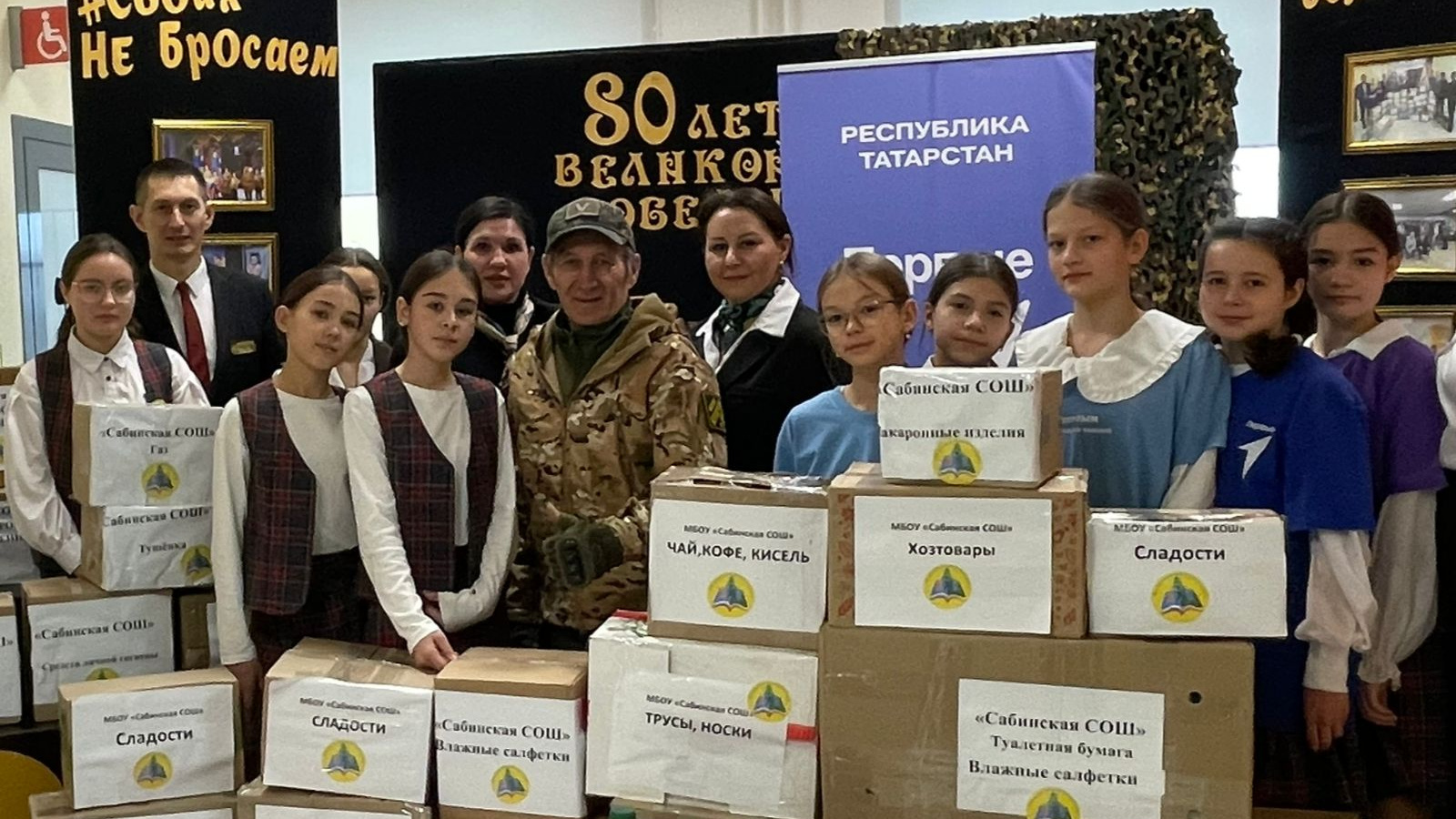 Саба урта гомуми белем биру мэктэбендэ педагогик сыйныф гуманитар ярдэм жыю акциясе уздырды. Уртак тырышлык белән сугышчыларга иң кирәкле әйберләрне җыеп җибәрергә мөмкин булды.