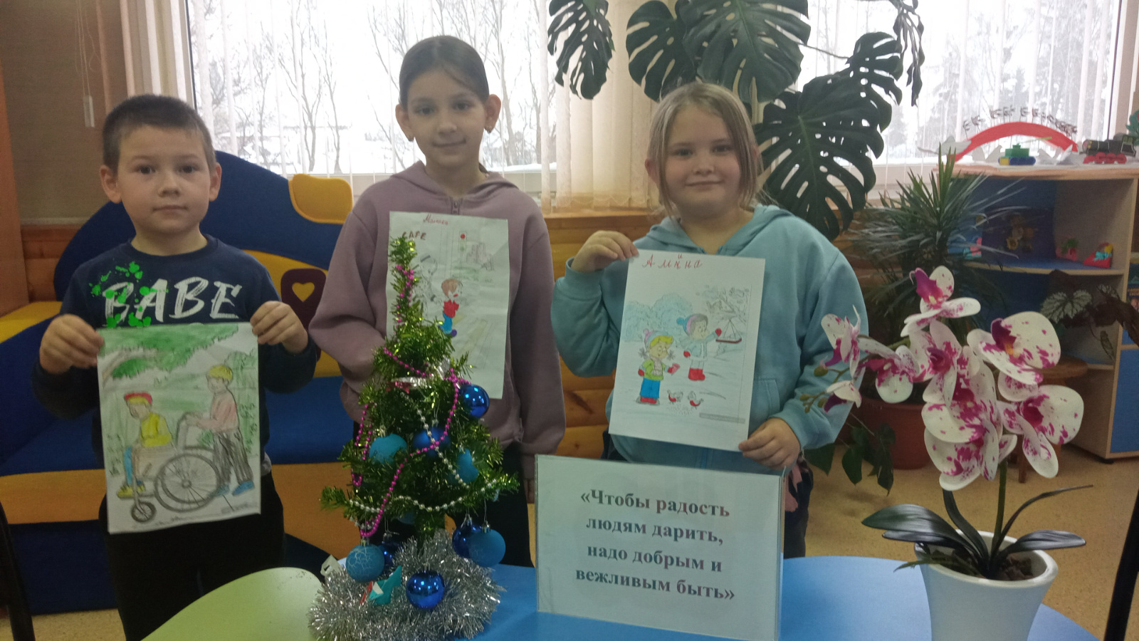 9 январь көнне китапханәче «Кешеләргә шатлык бүләк итү өчен игелекле һәм әдәпле булырга кирәк»дигән әдәплелек дәресе үткәрде. Дәрес башында китапханәче балаларга әдәплелек турында сөйләде. Әдәпле кеше - ул һичшиксез Этикет һәм яхшы гадәтләр белгече. Әдәплелек кешеләргә бер - берсенең җәмгыятендә үзләрен уңайлы хис итәргә һәм мөнәсәбәтләрдә киеренкелекне булдырмаска мөмкинлек бирә. Балалар өчен «әдәпле-әдәпсез» һәм «Тылсымлы сүзләр "уеннары," тәрбияле кешеме син?" викторинасы уздырылды.Ахырда алар үзләренең яхшы сыйфатларын үз рәсемнәрендә чагылдырдылар.