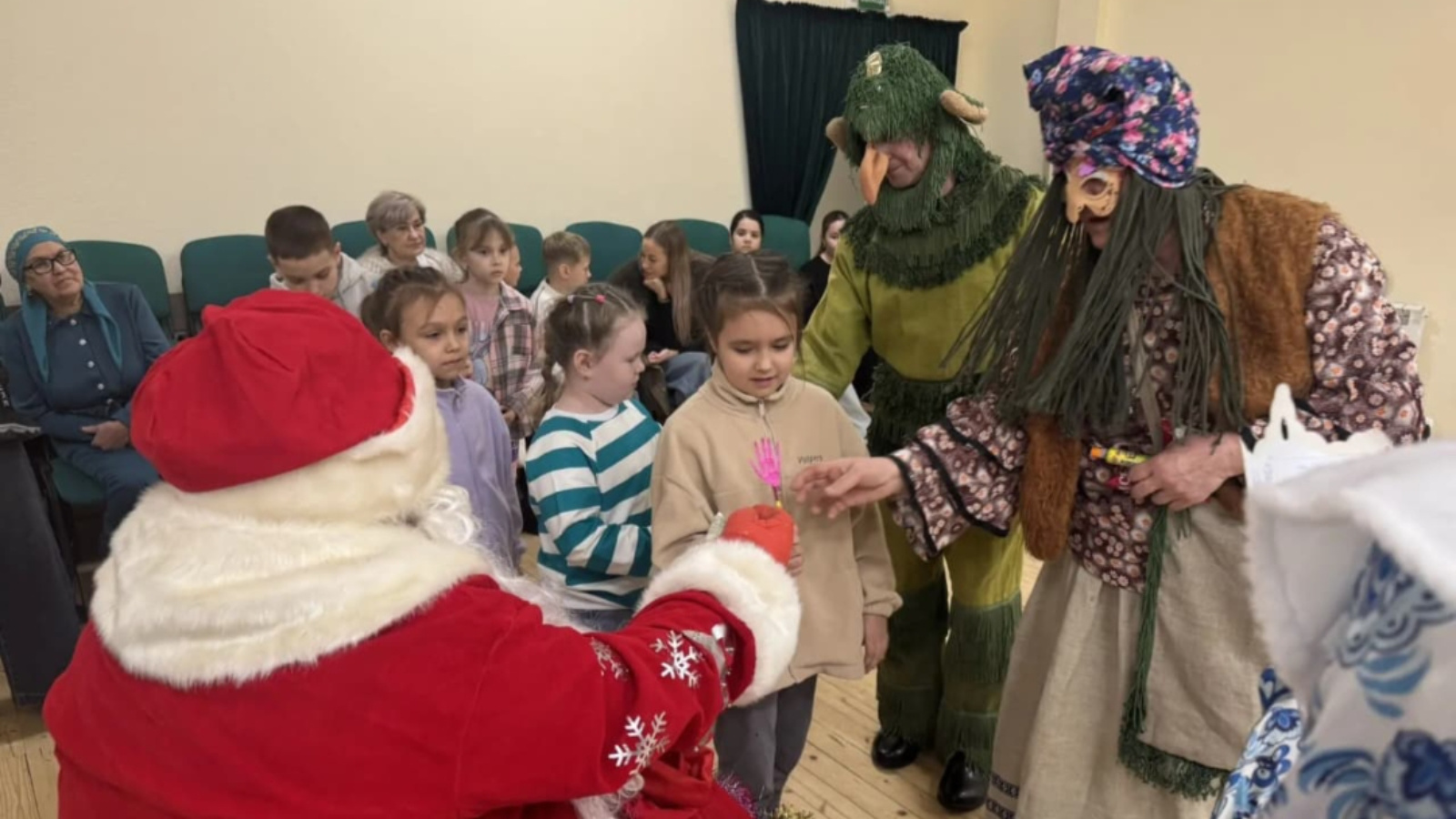Уеннар, конкурслар, биюләр яңа ел программасында катнашучылар һәм тамашачылар күңеленә хуш килде! Төрле төстәге, ялтырап торган гирляндалар һәм бизәкле чыршы балаларга могҗиза тудырды. Спектакльнең башыннан ук әкият геройлары балаларны әкияти тылсым дөньясына җәлеп итте. Балалар бәйрәм атмосферасына чумдылар, кызыклы конкурсларда катнаштылар. Бәйрәмнең кульминацион ноктасы ике метрлы куян булды, ул балаларга матур хис-кичерешләр һәм күңелле кәеф бүләк итте. Тамашадан соң барлык балалар да Кыш бабайдан татлы күчтәнәчләр алдылар.