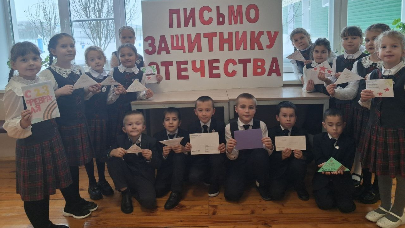 Ватанны саклаучылар көненә багышланган искиткеч инициативага старт бирелде һәм сыйныф җитәкчесе җитәкчелегендәге укучылар безнең яклаучыларга җылы хатлар яздылар. Үзләренең Юлламаларында балалар якынлашып килүче бәйрәм белән котладылар, нык сәламәтлек, тыныч күк йөзе һәм тизрәк өйләренә кайтуларын теләделәр. Бу акция-кеше тормышының кыйммәте һәм тынычлыкка омтылу турында мөһим искә төшерү.