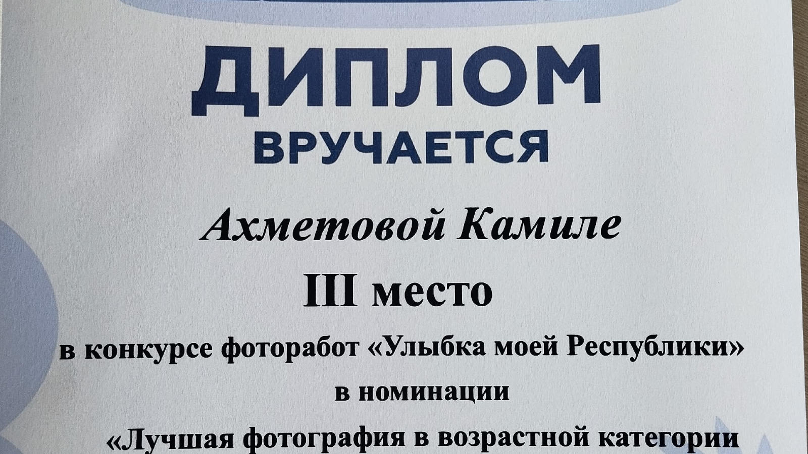 Тәрбияләнүчебез Әхмәтова Камилә «13 яшьтән 17 яшькә кадәрге категориядә иң яхшы фотография» номинациясендә катнашты. Сайларга фотосурәтләр күп иде. Тәрбияче А.М. Сибгатуллина җитәкчелегендә безнең Дашаның ромашка белән төшкән фотосын сайладылар. Котлыйбыз безнең фото III урын алды!